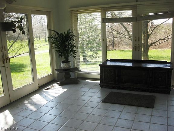 This fabulous ranch offers a rare find. Surrounded by nature with many blooming trees & shrubs, plus about 248 acre nature preserve, plus scenic view from front window of private golf course. As you enter the home, enjoy the glistening hardwood floor that flows throughout. Living Room features gas fireplace framed by built in bookshelves & cabinets. French doors off the dining room leads to a bright & cheerful 4-season Florida room that leads to outside deck. Kitchen offers many cabinets with built-in oven, microwave and dishwasher. One bedroom was made wheelchair accessible with full bath added with roll in shower and other special features. Basement partial finished with 2 rooms added and a full bath. Many other features that also include a 16 x 24 two story barn built in 1992. Country feel, yet city amenities & accessible to major highways and conveniences. THREE HOMES DOWN FROM THE NEW SHARON CENTER ELEMENTARY SCHOOL.