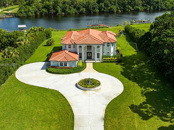 Experience water access luxury in this exquisite 8-bedroom estate offering over 5,000 sq ft of living space on nearly 2.5 acres. A grand entry with a curved staircase opens to a spacious living room with a gas fireplace, floor-to-ceiling windows, and breathtaking water views. The gourmet chef’s kitchen is a true showpiece, featuring warm wood cabinetry, granite countertops, a custom backsplash, dual breakfast bars, and top-of-the-line stainless steel appliances. A large central island with a prep sink, storage, and wine cooler completes the space—perfect for both everyday living and elegant entertaining.