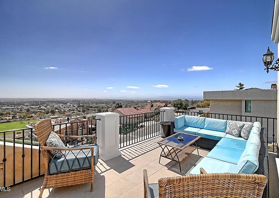 Experience elevated coastal living at its finest from this stunning Mediterranean estate perched atop Ventura's prestigious hillside community.Situated on nearly half an acre, this 4997 sqft residence offers panoramic views of the Pacific Ocean, Channel Islands and sparkling city lights. With 2 large primary suites and two additional bedrooms, spread across two levels and accessible by a private elevator. One of the primary suites is located on the main living level. The grand entry opens into soaring ceilings, stone floors and expansive windows that flood the home with natural light.Large gourmet kitchen with custom cabinetry perfect for entertaining. Step outside to the multiple terraces with sweeping ocean and city views. The outdoor space offers multiple patios ideal for sunset gatherings and entertaining. The back hillside has been terraced and planted and bring plenty of bounty from mature assorted fruit trees. Located in the desirable Poinsettia neighborhood, just minutes from beaches, shopping and top Ventura schools. This is a rare opportunity to own one of Ventura's iconic custom homes