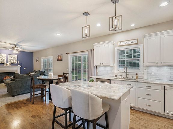 Look no further! This impeccably cared for and updated cul-de-sac home is nestled in the beautiful Applegate community where residents enjoy award-winning Portage schools, low Texas Twp taxes and access to walking trails, Al Sabo land preserve and Texas Corners shopping & dining. Hardwood flooring, newer carpet & paint as well as updated kitchen with quartz countertops, subway tile backsplash, center island, stainless appliances (double oven!) and custom pantry are just a few things you'll love about this home. Laundry/mud room with shiplap & floating shelves, newer high-efficiency furnace, A/C and water heater. Primary suite boasts vaulted ceilings, very generous en-suite & walk-in closet. The icing on the cake is the newly finished lower level, perfect for entertaining with a wet bar, spacious family and rec areas, a bedroom & bath. Brand new extended patio and retractable canopy, plus hot tub, on a large private lot overlooking a peaceful nature setting. Optional pool & clubhouse membership available. Don't miss this stunning home!