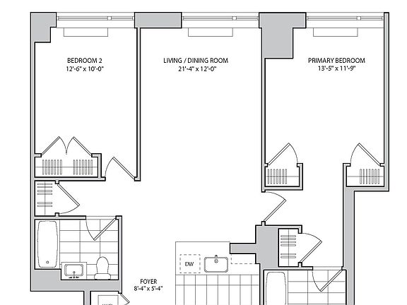 West facing 2 bedroom with over-sized windows featuring Manhattan skyline views , an open kitchen featuring stainless steel appliances, Caesarstone quartz counters and an eating bar, and an in-unit washer/dryer. Apartment also contains a luxurious primary bedroom suite with multiple closets and a private bath.