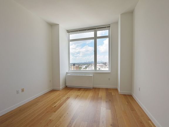 Incredible 1-bedroom with over-sized windows showcasing NYC skyline views, a gourmet kitchen featuring stainless steel appliances, Caesarstone quartz countertops, eating bar, and an in-unit washer/dryer. The apartment home also includes great closet space, high ceilings, and wood floors throughout.