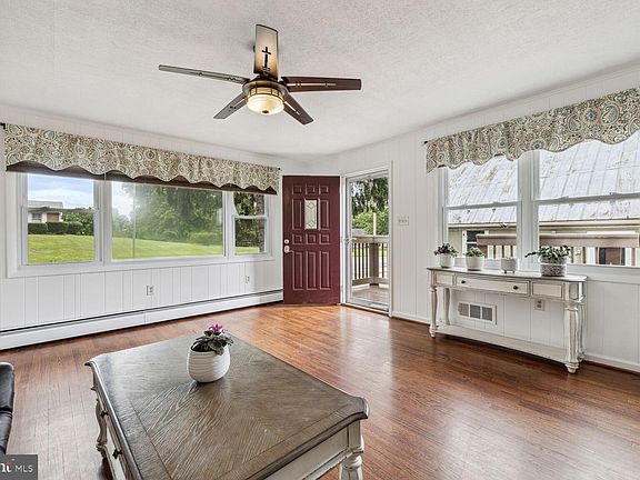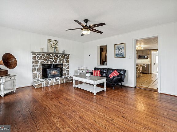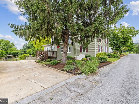Step into the timeless elegance of colonial architecture at 6155 King Rd, a meticulously maintained home built in 1895 on a picturesque 1.2-acre lot in Boonsboro, MD. This charming residence seamlessly blends historic charm with modern comfort, offering 4 bedrooms and 2 full bathrooms, including a main-level suite perfect for multi-generational living or guests. Inside, discover a freshly painted interior complemented by updated features such as a modern kitchen with stainless steel appliances, quartz countertops, and new washer/dryer (2 yrs. old). The main level boasts a family room with a stone fireplace and wood stove, ideal for cozy evenings, as well as a full bathroom and a versatile bedroom or office space. Upstairs, three spacious bedrooms offer plenty of accommodation, while outdoor living is enhanced by a sprawling deck with stunning sunset and night sky views. The property includes a 2-car garage with extra storage, sheds, and charming playhouse, patio and another fireplace, plus two pine trees ready for Christmas. Enjoy the tranquility of country living with proximity to downtown Boonsboro, Antietam National Battlefield, South Mountain State Park, and Greenbrier State Park. Don’t miss your chance to make 6155 King Rd your new home—schedule your tour today and experience the perfect blend of historic character and modern updates! The security cameras are in use and will be transferred to the new owners.