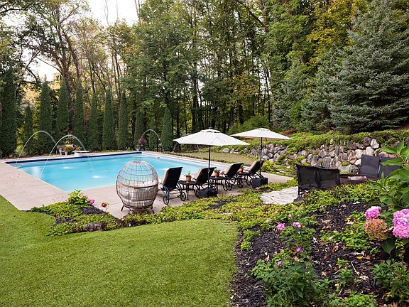 A long, tree-lined driveway leads to this turnkey residence that blends a vintage Parisian vibe with a touch of French country. Nestled on a quiet cul-de-sac with little to no traffic, this private, wooded escape offers peace and seclusion on nearly 1.8 acres of beautifully landscaped grounds.