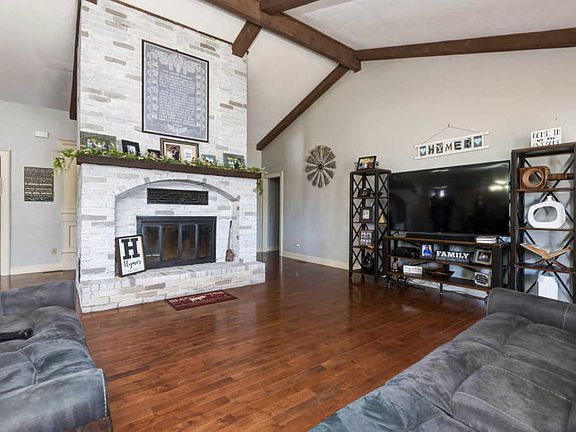 Beautiful walkout basement home on 10 park like acres in the Willard School District. With a recent remodel this home has hardwood floors throughout the main living areas, vaulted ceilings with wood beams, wood burning fireplace and crown molding throughout. The kitchen features custom built cabinets with granite tile countertops, stainless appliances and eat in kitchen area. The dining room is open to the living room and has a great flow for entertaining. Down the hallway the master bedroom has multiple closets, private deck, nice on suite bathroom with double sinks and a walk in shower! There are two more bedrooms on the main level which are a great size and have large closets. Downstairs there is a second kitchen with plenty of cabinets for storage. The basement is wide open with new carpet and is a great place for the family to gather with a second wood burning fireplace and 4th bedroom. Located off the living room upstairs is a large covered back deck that overlooks the in ground pool that is 12 feet deep. There is plenty of shop space with a 30X36 pole barn and a 40X72 shop with 200 amp power and concrete floors. The property has a beautiful setting with large hardwood tress and plenty of wildlife in the area.