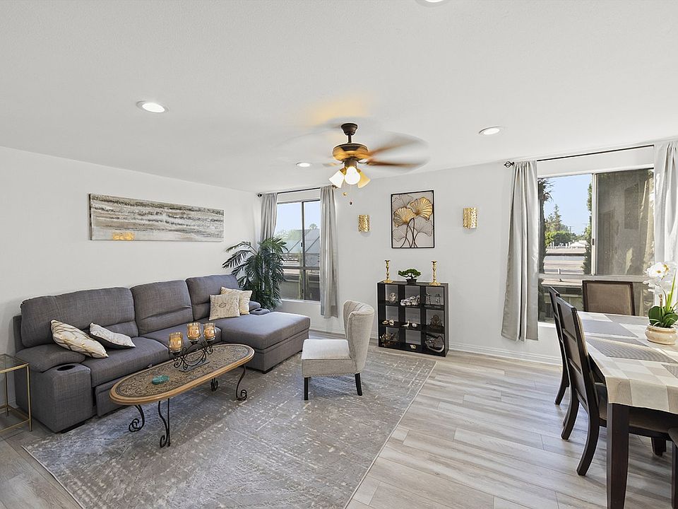 Welcome home to this beautiful and bright 3-bedroom, 2-bathroom condo featuring an open floorplan with sleek laminate flooring, recessed lighting, and storage space. The unit is perfect for spending your days at home relaxing or for entertaining guests. This is a two-story with a spacious living room and a good-sized dining area. In the kitchen you have ample countertop space, an eye-catching backsplash and plenty of cabinet space. There are 3 large bedrooms that have a vaulted ceiling and deep closets. The primary bedroom has a private ensuite bathroom, plus a private balcony! This is a well-maintained building with a community pool and a clean laundry room! This condo comes with 2 assigned parking spaces. Fabulous location! Close to Reseda Park, popular dining options, schools and more.