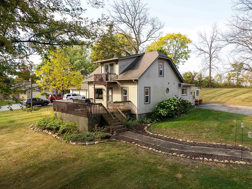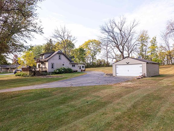This 2.17-acre property in Winnebago County outside of Cherry Valley offers wide open country views in every direction with a peaceful setting surrounded by timber and agricultural fields. As you pull up to the home, the large front deck sets the tone and gives you a great place to relax, sit outside, grill, or simply enjoy the views and open space that comes with living in the country. When you step inside, you enter through a mudroom area that works well for boots, jackets, and everyday in-and-out living. The eat-in kitchen features stainless steel appliances, plenty of cabinet space, and a cozy breakfast area that feels warm and comfortable. From there, you move into a larger family room and dining space that works great for gatherings, or the layout could easily transition into one oversized family room if desired, and this room offers direct access out to the deck as well. The main floor includes one bedroom, a large full bathroom with a walk-in shower, and a separate laundry room, which keeps day-to-day living convenient. Upstairs, you will find the large master bedroom that also has a separate space being used as a walk-in closet, but could be reworked to create an additional bedroom if needed. The basement is unfinished but clean and works well for storage or future expansion. Outside the property includes a two-car detached garage, an additional outbuilding, and a chicken coop for those who enjoy the homestead lifestyle. Even with the quiet setting, you are still close to Rockford, multiple forest preserves, and there are nearby access points to the Kishwaukee River offering excellent recreational opportunities. This property gives you that country feel, room to breathe, and the ability to enjoy a little land without being too far from town.