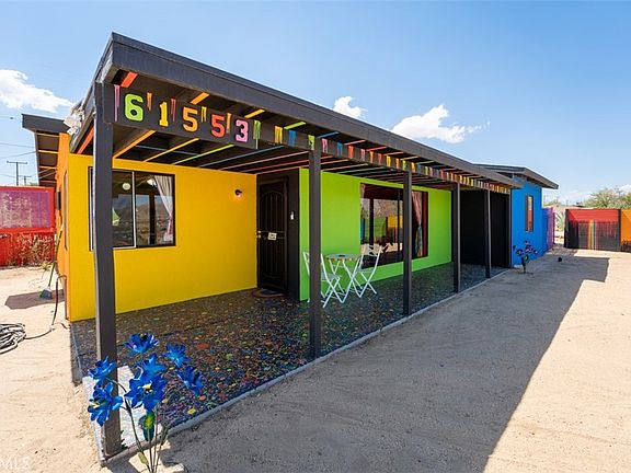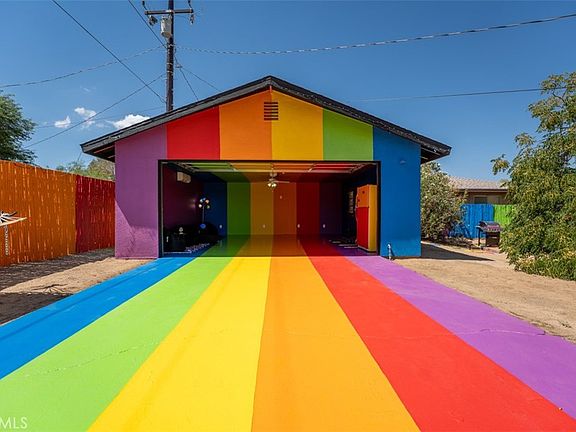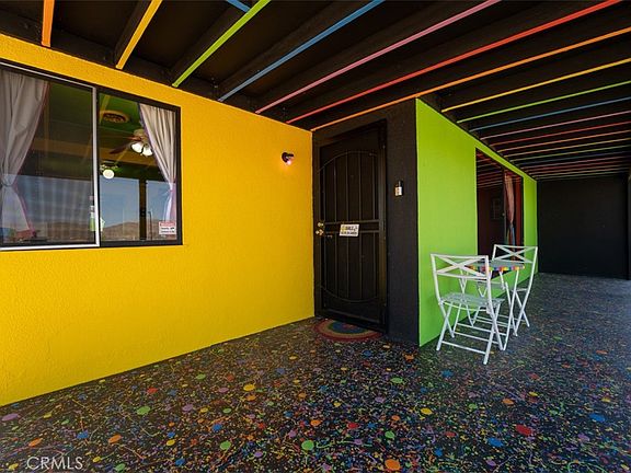Get ready to snag this ACTIVE AIRBNB! Are you ready to have your mind blown? Joshua Tree artist Patrick Hasson (creator of the world-famous Rancho De Colores & Color Trip Trailer, both of which have been featured in USA Today, Vice, Desert Sun, etc) spent the last 2 years hand-painting, designing, and creating the most unique and mind-blowing airbnb on the planet...The Rainbow House. The Rainbow House is located in the heart of Joshua Tree Village, overlooking the Little San Bernardino Mountains. A 3-minute walk from the shops & restaurants of downtown and a quick 4-mile drive from the West entrance of Joshua Tree National Park, The Rainbow House is ideally located for those looking to get the most out of their desert experience. The home features seven uniquely decorated rooms. The two bedrooms feature large closets, ceiling fans, and additional storage space. The living room features a large 6x10 ft. observation window with views of mountains and desert landscapes. Enjoy a separate entertainment room off of the living room equipped with a 42” inch widescreen tv system with blu-ray player, Netflix, amazon prime etc! Last and most certainly not least, the best feature of this home, THE RAINBOW ROOM. The garage has been converted to a completely hand painted rainbow room, designed specifically for photoshoots. Taking social media to new heights in your very own rainbow photo studio. The backyard includes a cowboy pool, fire pit, gas BBQ, corn-hole game area and outdoor rainbow bathroom with shower! This home is truly a masterpiece and one of a kind.