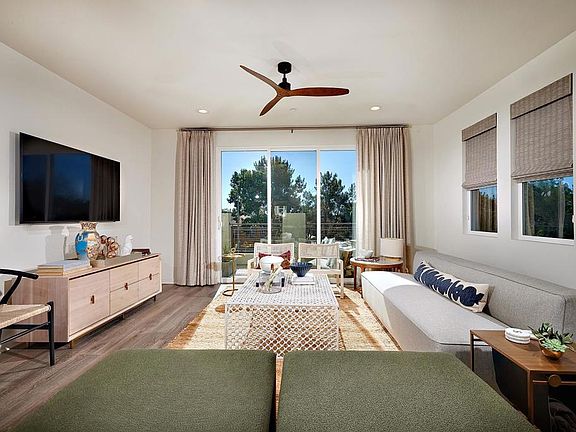 Introducing a rare end/corner unit at Kensington at the Square in Bressi Ranch in Carlsbad. This stunning condo has 2081 sqft. and provides spacious and elegant living in all areas of the home. This unit boasts 3 bedrooms and 3 ½ bathrooms and all 3 bedrooms are En-suite with its own private bathroom. Each floor has an abundance of nature light from all the south and west facing windows. The meticulously designed interior has engineered hardwood flooring, capturing both style and durability. The large entertainment-style kitchen is a culinary haven, featuring an oversized island with bar stool seating, quartz countertops, shaker cabinets with an abundance of storage, stainless steel high-end appliances, and a charming farmers-style sink. Ascend to the top floor and be greeted by a private primary suite with peak -ocean views, a constant reminder of the idyllic coastal lifestyle that awaits. The primary bathroom has dual vanity sinks, walk-in closet, oversized shower, and designer fixtures to match. Two decks/patios offer the perfect spots to unwind, entertain, and soak in the beauty of your surroundings. The oversized garage not only accommodates your vehicles but also provides excess storage space for your convenience. Embrace sustainability with leased solar, contributing to an eco-friendly and cost-efficient living experience. This condo isn't just a home; it's a gateway to a vibrant community. Enjoy the perks of a community pool, spa, tot-lot, and convenient proximity to shopping and restaurants. With award-winning schools, easy freeway access, golf courses, and San Diego beaches just moments away, every aspect of your lifestyle is catered to. Seize the opportunity to own a piece of Carlsbad's coastal charm.
