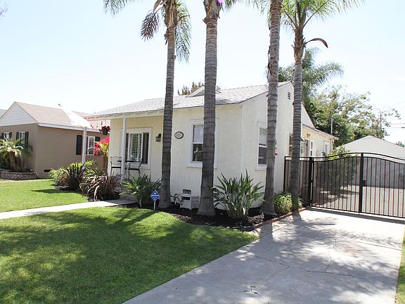 Turnkey Lakewood home on tree-lined street. Walking distance to schools, parks, shopping and dining. Remodeled kitchen with granite counter tops, bar, custom cabinets, tile flooring. Remodeled bathroom. Hardwood floors throughout, new windows and doors, plantation shutters, recessed lighting in the living room, ceiling fans in both bedrooms, new closet doors, new heater, tankless water heater, upgraded electrical and copper plumbing. New garage door with opener and security gate. Beautiful landscape front and back with in-ground sprinklers, large avocado tree, queen palms, brick fireplace, custom pavers and vinyl fence. 2 car detached garage and RV parking. Great for entertaining and lots of privacy.