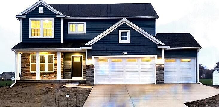 Newly constructed colonial in the Wyndstone Estates Community. This 2-story home boasts features including: 10-yr structural warranty, energy efficiency, 200 AMP service, 3-car attached garage with openers, 12x12 patio, quartz counters including island with extended edges in designer kitchen upgrade, rough-in plumbing for future basement bathroom, laminate wood flooring on entire main level except den, upper level laundry, dual sinks in master bath, mudroom entry from garage to kitchen, and large covered front porch entry.