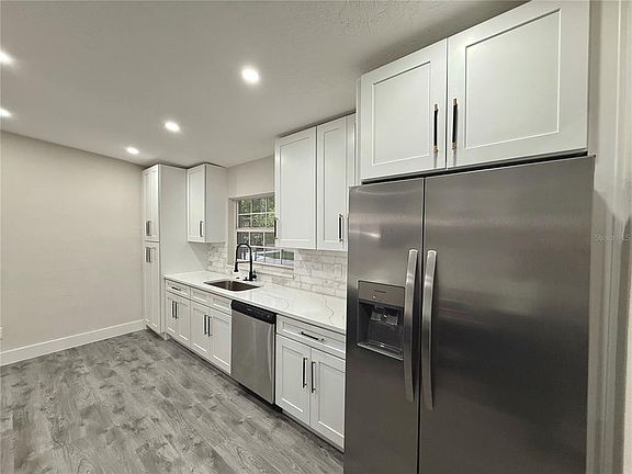6157 Medford Drive lives like a brand-new home, reimagined with luxury upgrades and an expansive open-concept design. At its heart, the home offers a spacious living room with a custom built-in entertainment center, a sun-filled dining area, and a chef’s kitchen appointed with solid-wood shaker cabinetry, soft-close drawers, pantry storage, quartz countertops, marble backsplash, premium hardware, and all-new stainless steel appliances with range hood. The primary suite provides a private retreat with a floating vanity, walk-in shower, and generous walk-in closet. Two additional bedrooms share a beautifully styled double-vanity bath with a new tub and finishes. Wide-plank luxury vinyl flooring flows seamlessly throughout, tying the spaces together with modern elegance. Schedule your showing today. A bright Florida room transitions to a covered lanai with tongue-and-groove detail, overlooking a large, fully fenced backyard—perfect for entertaining, pets, or simply enjoying the outdoors. Every detail has been completed with care: new roof (2024), new HVAC, fresh insulation, updated ceilings and walls, new interior doors and trim, modern lighting and fans, remodeled bathrooms, and even a new garage door with openers. This three-bedroom, two-bath home with a two-car garage is completely move-in ready. Centrally located with quick access to Downtown Orlando, the airport, shopping, and dining, 6157 Medford Drive combines style, convenience, and peace of mind—a rare turnkey opportunity, crafted to perfection. Don’t miss this opportunity- schedule your showing today.