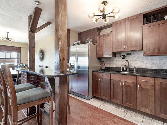 Stone decorative fireplaceLakefront locationPrivate balconyFloor to ceiling windowsBright open kitchenTravertine backsplashGranite countertops