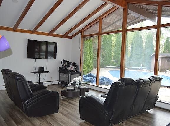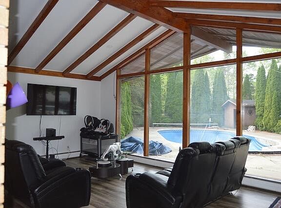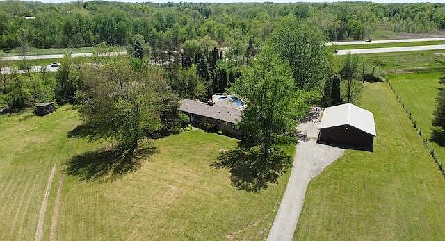 Welcome home, to your private five acre retreat! This four-bedroom Brick ranch has been impeccably well cared for, comes with an incredible list of updates and sits on five and a haft beautiful acres with a two Pole Barns. This all brick ranch has a 3 way fireplace, Kitchen w/custom Hickory cabinetry, built-in pantry, breakfast nook area,Perfect opportunity for the private buyer car/barn/horse/hunting/trail riding enthusiasts! 2 HUGE pole barns combined w/over 3000 square feet with electricity, heat and water. 33x54 pole barn with 400amps electric service, 60x20 pole barn with 200amps electric service and the house has 200amps electric service too. 40x20x9 in-ground pool. it is a must see home