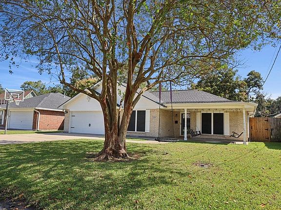 Beautifully Updated 3-Bedroom, 2-Bath Home with Spacious Sunroom and 2-Car Garage! This charming home features a desirable split floor plan with a private master suite and bath. Enjoy a large living room with cozy fireplace, fresh interior paint, custom butcher-block countertops, updated cabinetry, and stylish tile backsplashes. The home is smart-home ready with smart lighting and recessed lighting throughout, offering both comfort and modern convenience. A generous sunroom provides extra living or entertainment space year-round. Exterior highlights include a 2-car garage, programmable permanent holiday lighting, a wooden privacy fence, and a swing set—perfect for family fun. Conveniently located within walking distance to Lions Park, the Pecan Festival, Groves Splash Pad, and the Lincoln Avenue Business District. Move-in ready and beautifully maintained—this one checks all the boxes!!!