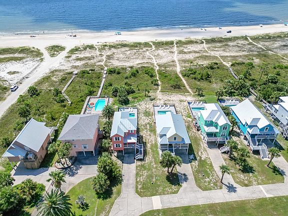 Experience the best of coastal living in this gulf-front, fully furnished home located between Cape San Blas and Indian Pass. Positioned on a stable stretch of shoreline and within one of the few FEMA-eligible, optional flood insurance areas in South Gulf County, this property combines peace of mind with stunning views. A heated pool with brick paver accents, installed in 2024, provides the perfect complement to days on the beach—relax by the water's edge or enjoy evenings in the pool. The home's location is ideal, just 350 feet from Gulf County's beach access for driving vehicles and toys onto the sand, and only 1,000 feet from Salinas Park with pickleball courts and bay access. Inside, the main level features an open-concept living, dining, and kitchen area that extends onto a large deck with unobstructed gulf views and direct access to both the pool and beach path. This floor also includes a queen bedroom, a full hall bath, and a laundry closet. Upstairs, you'll find a beachfront king bedroom with en suite bath, a bunk room, and a shared hall bath—perfect for family or guests. This property is a turnkey investment and vacation retreat at a fantastic price point.