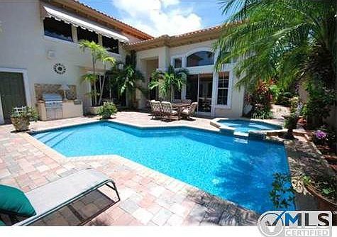 Stunning Boca Lakeside courtyard home - 4 BR 3 1/2 BA, magnificent updated island kitchen with million dollar lake view, new tile flooring, spacious Master Suite & Guesthouse. Grand Santa Barbara Clubhouse, pool, tennis, exercise facility & more. This fantastic home has lake view windows in the Kitchen and Family Rm like no other in the community. You enter the home to the court yard pool, spa and gathering spot for entertaining & outdoor dining with built-in summer kitchen/grill. Beyond is a double door entry to the Living Rm & Dining Rm with soaring volume ceilings. Spacious Master Suite with Courtyard view enjoys a Master Bath with double sink vanity, separate shower, Roman tub, private water closet & two walk-in fitted closets. The large & magnific... (see supplement for full remarks)