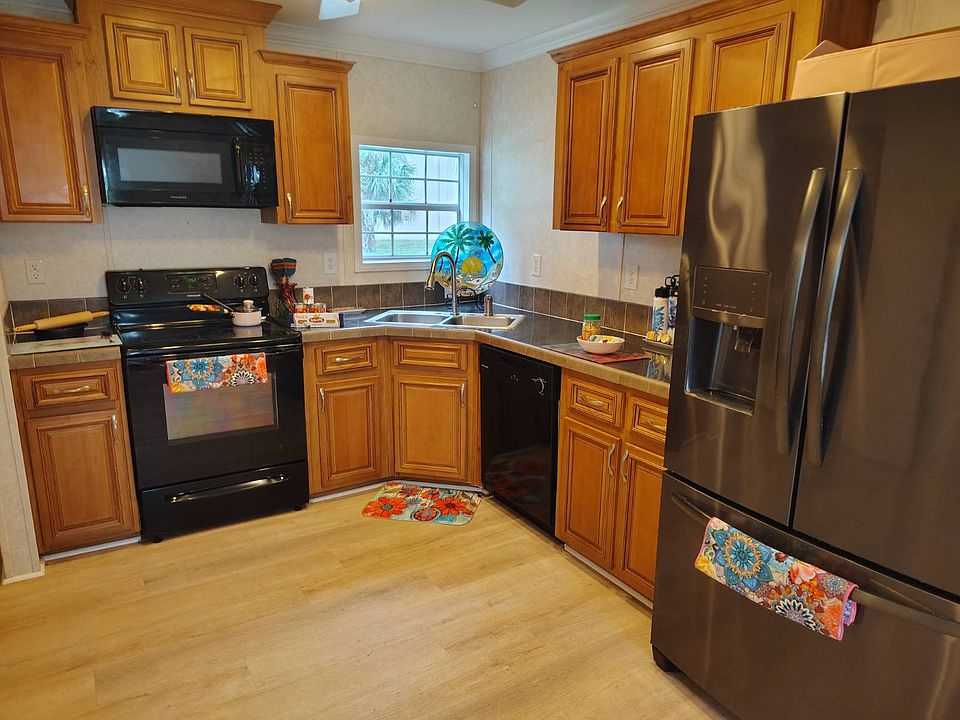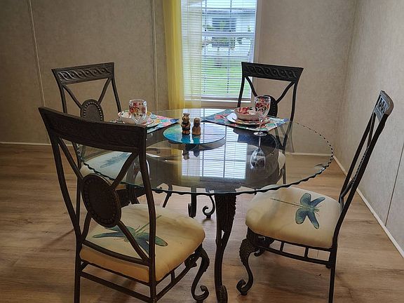 Welcome Home! This lovely and spacious 2-bedroom/2-bath oasis located in the desirable Spanish Lakes Fairways Golf Course community for 55+ is ready for you! Situated on a CORNER LOT in a CUL DE SAC, with a Split / open floorplan, makes this home appealing to buyers. The seller is open to all reasonable offers or negotiating in 2 months FREE LOT RENT with a full price offer. You will love this home, featuring plenty of space. This home presents Vinyl Plank Flooring throughout for easy maintenance and care. Enjoy culinary artistry in your large kitchen with ample cabinets and counter space. All appliances stay: a huge stainless steel refrigerator, a newer washer and dryer. This kitchen opens up to the large dining and living room combo for grandeur. Perfect for entertaining. The primary bedroom is located just off the living room and fits a king-size bed and dressers with plenty of space for comfort and tranquility. Retreat to the ensuite bath for a spa-like experience, and the large walk-in closet offers room for all your wardrobe needs. Visitors will enjoy the privacy of your Guest Bedroom and guest bath on the opposite side of the home. Just off the living room are sliding doors into your screened porch for enjoyment during the cooler months. This home is located on a PET LOT, so don't leave your furry family members behind. The lot rent of $917.34 allows you to enjoy the 18-hole golf course, so if golf is your thing, you're in the right place! In addition, tennis and pickleball courts, 2 pools, a clubhouse with an attendant, billiards, a fitness gym, and many clubs and activities are available for all residents. The annual water bill is $492.00. Spanish Lakes is just 25 minutes to beaches, 15-20 minutes from Downtown Fort Pierce, and 10 minutes to the nearest grocery store, gas stations, and strip mall with plenty of restaurants. Only 15 minutes to Vero Beach for more shopping needs, 5 minutes from I-95, 1hour and 40 minutes to Disney and surrounding parks in Orlando. Don't miss out on this great home! Whether you are looking for a home year-round or a seasonal getaway, there's never been a better time to begin the Florida lifestyle you deserve. Call today! All listing information is deemed reliable but not guaranteed and should be independently verified through personal inspection by appropriate professionals. Our company does not and cannot guarantee or warrant the accuracy of this information or the condition of this property. Measurements are approximate. The buyer assumes full responsibility for obtaining all current rates of lot rent, fees, and pass-on costs. Additionally, the buyer is responsible for obtaining all rules, regulations, pet policies, etc., associated with the community, park, or home from the community/park manager. Our company is not responsible for quoting said fees or policies. Financing is available through 3rd party lenders. The sales price does not include tax, dealer fees, or administrative fees. Please contact the sales agent for additional information.