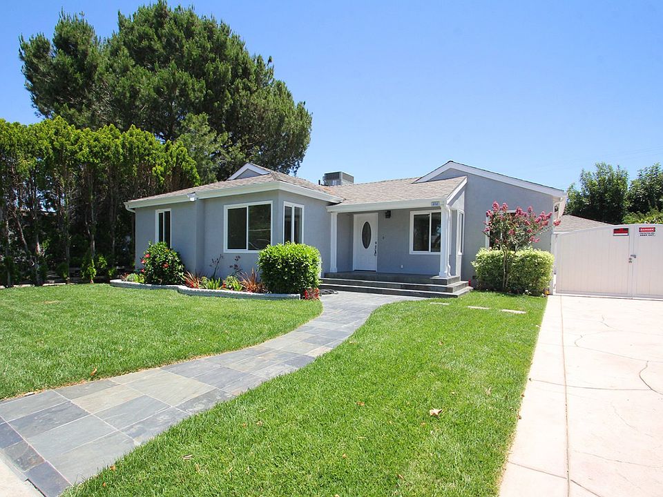 Beautifully Remodeled, with taste to raise a family comfortably, yet meticulously styled with class for Entertainment and fun gatherings. Welcome to this 4 Bedroom (One of the bedrooms is a convertible den), 3 bath home, with Portofino laminate floors, recessed lighting, sunroof for extra light throughout the home and wide French doors leading to the greenery of the back yard! The open plan chef kitchen faces the large living room and dining room area. The kitchen Island invites you to share a meal served on the beautiful Quartz Counter top. Kitchen equipped with stainless steel appliances, white custom-made self-closing/roomy cabinets and wall to wall back splash! Spacious master bedroom wakes you up to the fragrance of the flowers in the yard and the greenery views through the large Patio doors. His and Hers walk in closet. Luxurious master bath with rain shower and Jacuzzi bath tub feels like a resort spa vacation. Two of the bedrooms enjoy sharing a large complete bathroom for comfort. Home also features new Plumbing, surveillance camera, motion sensitive exterior lights, RV access and a 2-car detached garage! Work room built behind garage with ventilation. This home is located in a sought-after Tarzana neighborhood!