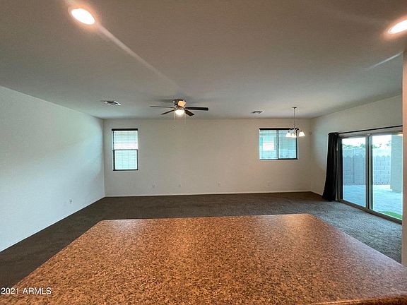 : LANDSCAPING AND ALARM SERVICE INCLUDED IN LEASE WITH NO ADMIN FEES ADDED. Beautiful 3 bedroom 2 bath plus a den home located in a gated community. Home is less than 3 years old. Functional floor plan with the kitchen opening up into the great room. Large side by side refrigerator with black appliances. Kitchen island has a breakfast bar great for entertaining. Large pantry with plenty of cabinet space in the island. HE washer and dryer included. All bedrooms are of good size with ceiling fans throughout the home. Master has large walk-in closet. Backyard was recently landscaped with artificial grass surrounded by travertine. Travertine also underneath the cover patio as well. Nice trellises with plants and lighting.