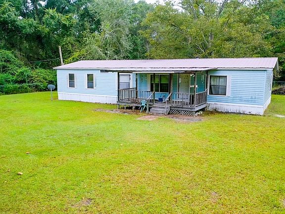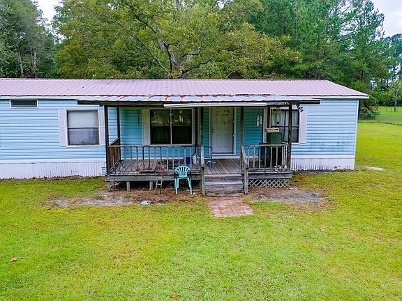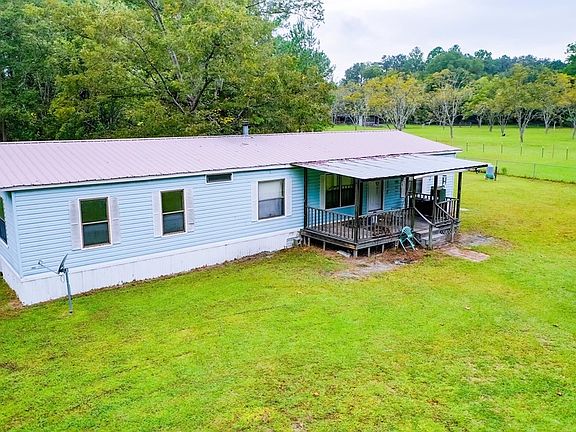 Here's an affordable home opportunity in the current market. This mobile home features 4 bedrooms and 3 baths on 5.45+/- acres. Front porch leads to spacious living room with carpet and wood fireplace. Kitchen with vinyl flooring, eat-in bar, oven/range (some stove burners do not work), dishwasher and refrigerator. Dining area. Laundry area. Master bedroom with vinyl and master bath with double sinks and tub/shower combo. Bedroom 2 with vinyl and bath with tub/shower combo. Bedrooms 3 and 4 with carpet. Bath 3 with shower only. Property with chain link fence, deep well and septic; 4 blueberry bushes and 2 pecan trees. Metal roof. All electric re heating/cooling. Original hot water heater. This sale is part of an estate sale so seller does not have any disclosures, but knows the hot water heater is original. Not sure if this property will be FHA eligible due to minor things, but any FHA buyer welcome to submit an offer. Home sits at end of road. Call today!