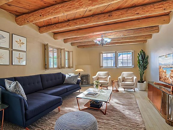 One-of-kind property in a one-of-kind location! This Watson adobe home is steps away from Tiguex Park, Old town, museums, the Abq Bio Park, shops and eateries. Incredible, walkable location on a private, tree-lined street. The home itself has been beautifully updated and lovingly maintained, while keeping it's old-world charm. Y'all will love the hardwood floors, tongue-in groove ceilings with large viga timbers, and the woodburning kiva fireplace. The open, eat-in kitchen boasts modern amenities such as stainless-steel appliances, and granite countertops. The screened in porch, covered patio and heated and cooled outbuilding provide additional flex spaces. If you want a home with authentic New Mexican character, this is the one you have been waiting for!