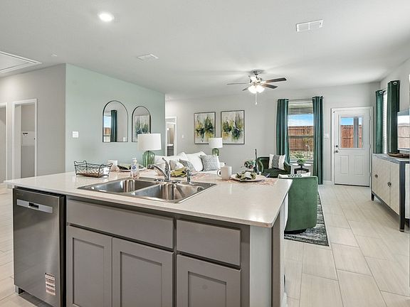 New and available for a Quick Move-in!! D.R. Horton America's Builder since 2002 is excited to serve as your new home builder in Monarch at the Meadows, a fabulous unique master planned community in Denton and Krum ISD! The Lexington floorplan Elevation-B offers approx 2,093 square feet of living space spread across 5 bedrooms and 3 full bathrooms. As you enter the spacious foyer you'll see two bedrooms and second full bath at the front of the home. Passing through the foyer, you'll find yourself in the combination dining room, kitchen, & spacious living room. The Lexington kitchen offers granite countertops, stainless steel appliances with gas cooking range, a corner walk-in pantry and a large kitchen island that faces the living room. The living room is wide open and perfect for entertainment. Located privately off the dining room are the remaining secondary bedrooms and a third full bath. The private main bedroom is located at the back of the home and features an en-suite bathroom, complete with dual vanity sinks, walk-in closet, and walk-in shower with ceramic tile surround. Additional features include: tankless water heater; Ceramic tile flooring at Entry, Hallways (per plan), Kitchen-Breakfast, Living Room, Utility and Bathrooms; and, full yard sod, landscaping and irrigation. This home includes our HOME IS CONNECTED base package. Using one central hub that talks to all the devices in your home, you can control the lights, thermostat and locks, all from your cellular device. Situated conveniently near Highway 35 and Highway 380, Monarch at the Meadows provides easy access to key roads, making it ideal for commuting and exploring the surrounding areas.