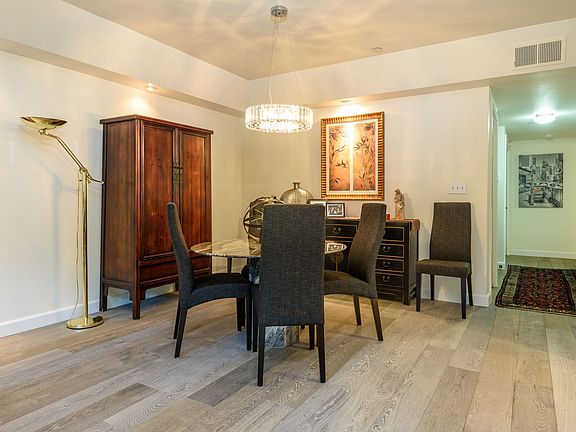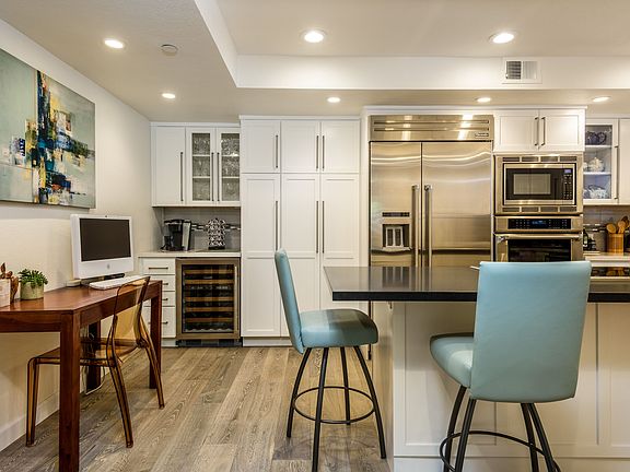Wonderful condo which has been beautifully remodeled with a fabulous kitchen and master suite. Great floor plan includes 2 bedrooms, 2 bathrooms, family room, dining area, and living room with fireplace, and large private deck. Bright first-floor unit is privately located in back of building. Modern kitchen features quartz counters, stainless Thermador appliances, Induction stovetop, high ceilings, and custom cabinets. Beautiful master bedroom has walk-in closet plus another large closet. Indulgent master bath has separate shower/toilet room, oversized shower, double sinks, stone counters, and vanity counter. Second bedroom/oce with built-in cabinets and Murphy bed. Large private deck with room for lounging, grilling, and gardening. Secure underground parking with 2 designated spaces and storage. Fantastic walkability with nearby shopping and dining in vibrant downtown Burlingame!
