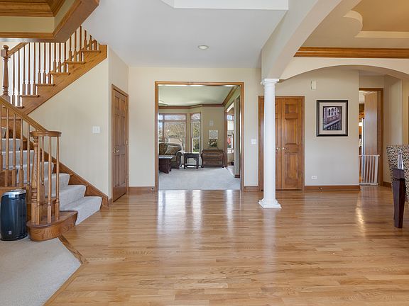BRAND NEW Carpet Just Installed in Family Room, Stairs, Landing, and Upstairs Hallways | Full Roof Tear-Off Replacement in 2015 + Siding and Gutters | BRAND NEW A/C | Freshly Painted Garage, some Additional Bedrooms, Master Bath Commode, and other touch-ups | Step into luxury with this upgraded 5-bedroom, 4.5-bathroom enlarged-custom home, boasting an expanded footprint designed for spacious living! Nestled in the sought-after Lakes of Bliss Woods subdivision, adjacent to the Lakes of Bliss Woods Forest Preserve, this two-story residence offers endless opportunities for comfortable living- all with quick access to Naperville and the surrounding Suburbs. Hiking, Dining & Shopping, Walks to the Park, and so much more to do here in beautiful Sugar Grove! As you enter this home, 9-foot ceilings and gleaming hardwood floors welcome you, leading you through the foyer, dining room, kitchen, eating area, and powder room - wired with an in-home speaker system throughout the main level for your music!! The dining room features an arched entryway and an immaculate custom paint job, while crown molding adorns the family room, dining room, and living room, adding a touch of elegance. The kitchen is complete with a large island countertop, stainless steel appliances (Brand NEW Dishwasher 3/19/24), luxury Viking Oven/Stove-Top, and ample cabinet and drawer space. The first floor also features a cozy gas fireplace in the living room, a den with crown molding and recessed lighting near the laundry room, and a convenient half bath. Serenity ensues as you step out back to the patio paver with a brick entertaining area and a built-in fire pit, perfect for having outdoor guests or simply relaxing out back on your own. Upstairs, the primary bedroom awaits with a tray ceiling, ceiling fan, and a spacious walk-in closet. The master bath includes a double sink vanity, an oversized jacuzzi tub, a separate commode, and a shower. Three additional bedrooms offer ample space and storage, with one bedroom featuring its own private bathroom and walk-in closet. The finished basement is an entertainer's delight, featuring a large wet bar with a built-in Kegerator and a separate fridge, an entertainment area with an electric fireplace, and a built-in fish tank next to the additional recreational space. A ventilation system is ideal for cigar enthusiasts, while a full bathroom with a walk-in shower adds convenience. Additional features include a 3-car garage with built-in shelving and a central vacuum system. Additional caulking and grout work has been meticulously done throughout, ensuring this home is in solid order for its new Owner to come in and personalize. Don't miss the opportunity to make this incredible custom home your own!