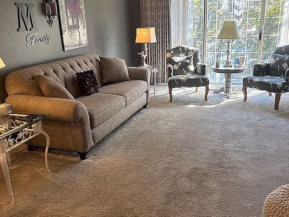 Bright, south-facing unit with walk-out balcony off the family/living room having a wall of windows with glass slider that looks out onto mature tree front lawn. White marble-faced, decorative fireplace. Newer furnace with AC. Stainless steel kitchen appliances; electric range, dishwasher and full size refrigerator. Master bedroom with adjoining bath room with spacious closet.
