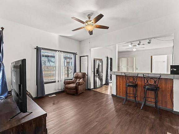 Charming 1.5 Story Home with Unique Detached Garage! Welcome to this beautifully updated 1.5 story home featuring fresh paint inside and out! Enjoy the spacious concrete patio and cozy side covered patio, perfect for relaxation. The standout oversized detached 2-car garage even has its own bathroom-a rare find! Upstairs has a versatile loft awaits your creative touch, whether its an office, playroom, or studio. One bedroom's flooring will be finished before you move in, ensuring a seamless transition. With Stylish metal and brick fencing, this unique property offers both character and security. Don't miss out on this gem-schedule your showing today!