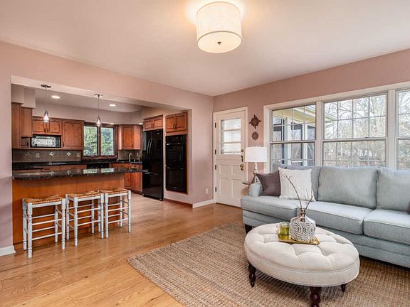 Location, Location! Fantastic, spacious home on 3/4 acres of wooded privacy abutting the ravine. Formal living room and family room. Open concept remodeled kitchen with breakfast bar, granite countertop, custom cabinetry and natural fireplace. Large foyer entrance, formal living room, main floor office and dining room. 4 bedrooms upstairs plus upper landing office nook. Large master bedroom with oversized closet. Master bath walk in shower, large dual sink vanity. Plenty of storage, lower level rec room. 3 season sunporch, great backyard, circle driveway. Move in ready, welcome home!