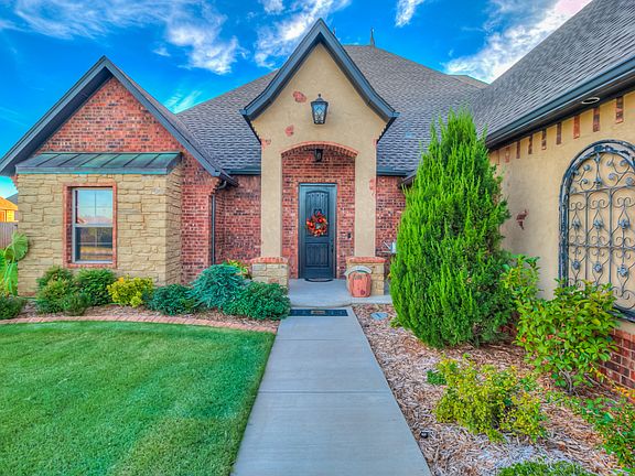 Beautiful, custom built home in the award winning Mustang School District. Located in the sought after community of Sara Homestead with wooded lots and rolling hills. This home comes complete with 5 bedrooms and 3.5 baths. Walk into your open floor plan with vaulted ceiling in the living room and windows looking into your back yard. Entertain in your chef's kitchen with huge kitchen island, built-in gas stove, hidden spice racks, and walk-in pantry. The oversized dining area is perfect to host large family gatherings. Relax in your master suite with double vanities, walk-in shower with bench, jetted tub, and large master closet. The amenities don't stop there! There are gems featured throughout the house to include hidden bookcase storage in master bedroom, built-in wall mirror with jewelry storage in master closet, tons of attic storage with spray foam insulation, and in-ground storm shelter located in the garage. Schedule your showing today!