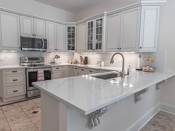 Welcome to this show-stopping four-bedroom, three-and-a-half-bath luxury home in the prestigious gated community of The Bluffs on the Waterway. From the moment you arrive, the curb appeal captivates—with a paver driveway, two-car garage, and timeless Mediterranean design. Step inside and prepare to be wowed. The grand living room soars with 30-foot ceilings, a dramatic wrought-iron staircase, recessed lighting, and a gas fireplace framed in marble. Natural light pours through Anderson windows and doors, showcasing the home’s exquisite craftsmanship and detail. The main level is designed for both entertaining and everyday living. The gourmet kitchen is a chef’s dream, featuring stainless steel appliances, new quartz countertops, new tile backsplash, custom wet bar, pantry, breakfast nook, and a stylish eat-up bar. Gather for formal meals under the chandelier-lit tray ceiling in the dining room or unwind in the Carolina room with panoramic pool views. Your first-floor primary suite is a private retreat with a tray ceiling, screened porch access, and a spa-like en-suite with dual walk-in closets, split vanities, Jacuzzi tub, and custom-tiled shower. Upstairs, every bedroom has a ceiling fan, with two sharing a Jack-and-Jill bath and one boasting its own private en-suite. Outside, paradise awaits. The backyard is a private oasis with a 15x30 pool surrounded by 2,000 sq. ft. of travertine decking—perfect for sun-soaked afternoons and unforgettable gatherings. A full cement block fence ensures ultimate privacy. Recent upgrades include: Kitchen renovated September 2025, New Roof (2024), New 2nd Floor HVAC (2024), Kitchen Appliances (2024), Light Fixtures (2024), Custom Primary Closets (2024), plus the travertine tile and pool (2020). Living in The Bluffs means resort-style amenities at your fingertips: two clubhouses (including one on the Waterway), pools, tennis and pickleball courts, basketball, playground, private boat storage and ramp, day docks, and more. And with shopping, dining, entertainment, and the beach just minutes away—you’ll truly have it all. Square footage is approximate; buyers are encouraged to verify.