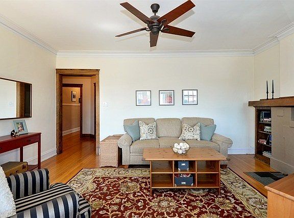 Vintage charm updated for modern life! This huge 7 room condo lives like a single family home. Pull into the garage, walk through the backyard and up to your sunny condo. The updated kitchen is open to the family room. Entertain in the beautiful, large living room with fireplace and vintage builtins. Sip your coffee in the lovely sunroom where light streams in through 3 exposures. Beautiful hardwood floors, crown moldings and high ceilings provide period detail. Ample closets in unit and there is also plenty of extra storage in your dedicated storage room. In unit laundry and pet friendly building. Search no more!