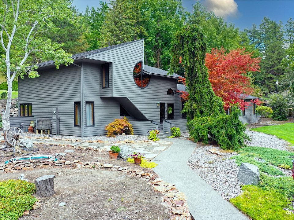 Unique custom built 4 bed / 2.75 bath home feels like the country while living in town. This house has everything you are looking for at over 2,800 sq ft on 3.4 park like setting acres. So many custom features including stone fireplace (& pellet stove), tongue & groove vaulted ceilings, arched doorways, hardwood floors, & craftsman features. Main floor has large living room, dining, kitchen, family room, 3 bedrooms, 2 baths, & tons of storage. Top floor is exclusively the primary suite w/ large 5 piece en-suite, 2 walk-in closets , bench window seat & more. Home has fresh paint exterior paint and new roof. Outside has beautiful new stamped concrete patio, pond w/ fountain, sprinkler system, 672 sq ft insulated garage, & workshop w/ benches.