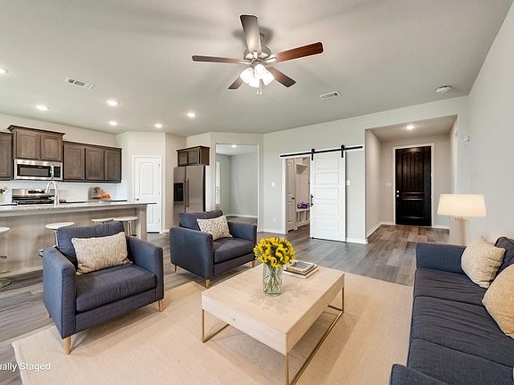 Nearly new home in Gainesville’s desirable Liberty Point subdivision! Situated on a corner lot, this 3-bedroom, 2-bath home with a 2-car garage was completed in 2024 and has been gently lived in. All builder warranties remain active through Riverside Home Builders. Inside, enjoy a smart split-bedroom layout with two guest rooms near the entry and a versatile flex space perfect for a home office, playroom, or craft room. The open-concept kitchen boasts extended countertops, a large island, and a walk-in pantry with two full walls of shelving—perfect for storage and meal prep. The spacious living area flows seamlessly to the covered back patio, ideal for entertaining. Tucked in the back, the private owner’s suite features abundant natural light, direct patio access, dual vanities, a stand-up shower, soaking tub, and a walk-in closet. This home offers comfort, flexibility, and modern living in a growing neighborhood.