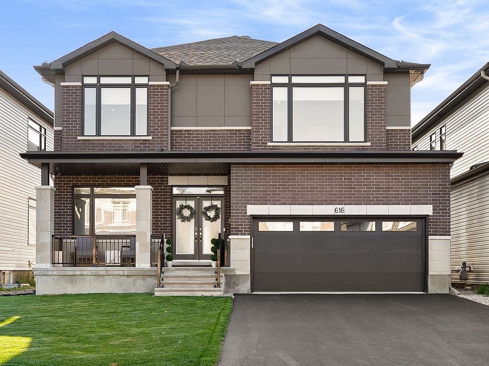 Experience luxury living in this spacious 6-bedroom + office, 4 full bath executive residence situated on a rare 150-ft deep lot in one of Ottawa's most sought-after neighborhoods. Boasting 3,777 sq. ft. above grade plus a builder-finished 650 sq. ft. lower level (MPAC), this home offers around 4,427 sq. ft. of beautifully designed space perfect for modern families and multi-generational living. Step inside to discover 9-ft ceilings on all three levels, a bright main-floor office, and a bedroom with full 4-piece washroom, ideal for guests or extended family. The open-concept Family room and dining area feature rich hardwood floors and an abundance of natural light, creating a warm, contemporary ambiance. At the heart of the home, the Deslaurier Gourmet kitchen showcases a quartz waterfall island, matching quartz backsplash and countertops, soft-close cabinetry, under-cabinet lighting, and premium KitchenAid & Bosch appliances a perfect blend of style and functionality for everyday living and entertaining. Upstairs, find five spacious bedrooms, each bedroom connected to a bathroom and featuring custom-built closets for maximum organization. The builder-finished lower level adds a bright recreation area with large windows ideal for a home gym, playroom, or media retreat. Designed for comfort and convenience, this home includes Smart motorized blinds, Kasa Smart dimmer switches, Nest smart doorbell, Nest Smart lock, EV rough-in, CAT-6/5 ethernet internet points (6) and 200-amp electrical service providing a seamless integration of luxury and technology. Located close to top-rated schools, LRT, parks, and scenic walking trails, this meticulously maintained home truly offers the best of Ottawa living where premium finishes, smart living, and a rare large lot come together for an unmatched lifestyle experience.