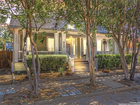This beautifully updated home is ideally located in San Antonio's sought-after Five Points neighborhood, just 5 minutes from The Pearl, the River Walk, and The Alamo. A spacious front porch welcomes you, perfect for sipping your morning coffee. Inside, the bright open floor plan highlights the home's charm, featuring original hardwood floors, soaring ceilings, and fresh paint throughout. The generous living area includes both a parlor and a family room with an inviting fireplace-the family room could easily be converted into a primary bedroom with an ensuite, offering flexible space to suit your needs. The layout flows into a well-equipped kitchen with plenty of storage and a cozy eat-in dining space, making it both functional and inviting. Step outside to enjoy a covered pergola that is perfect for BBQs, along with a fire pit area ideal for relaxing evenings. The backyard offers a great space for entertaining or simply unwinding in comfort. With a perfect blend of historic character and modern updates, this home delivers style, comfort, and an unbeatable central location.