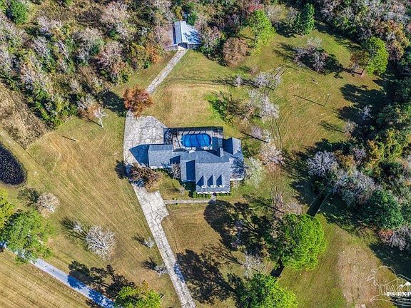 Located in the highly sought-after Meander Farm Estates, this beautiful four-bedroom, three-and-a-half-bath home sits on just over 4 acres of peaceful countryside and offers a rare opportunity to own acreage in one of Cantonment’s most desirable neighborhoods. The property features a horse stable and barn with a pasture that could be cleared to fulfill your equestrian dreams. The property also features a screened-in pool and patio a perfect place for outdoor living and entertaining. Inside, you’ll find a main-floor primary suite, a spacious kitchen, and a welcoming living area with seamless indoor-outdoor flow. The roof was replaced in 2021 & the HVAC (3 systems) were replaced in 2025 leaving cosmetic touches to make it your own. With its acreage, prime location, and family-friendly layout, this home combines country charm with incredible potential — ready to be transformed into your dream residence.