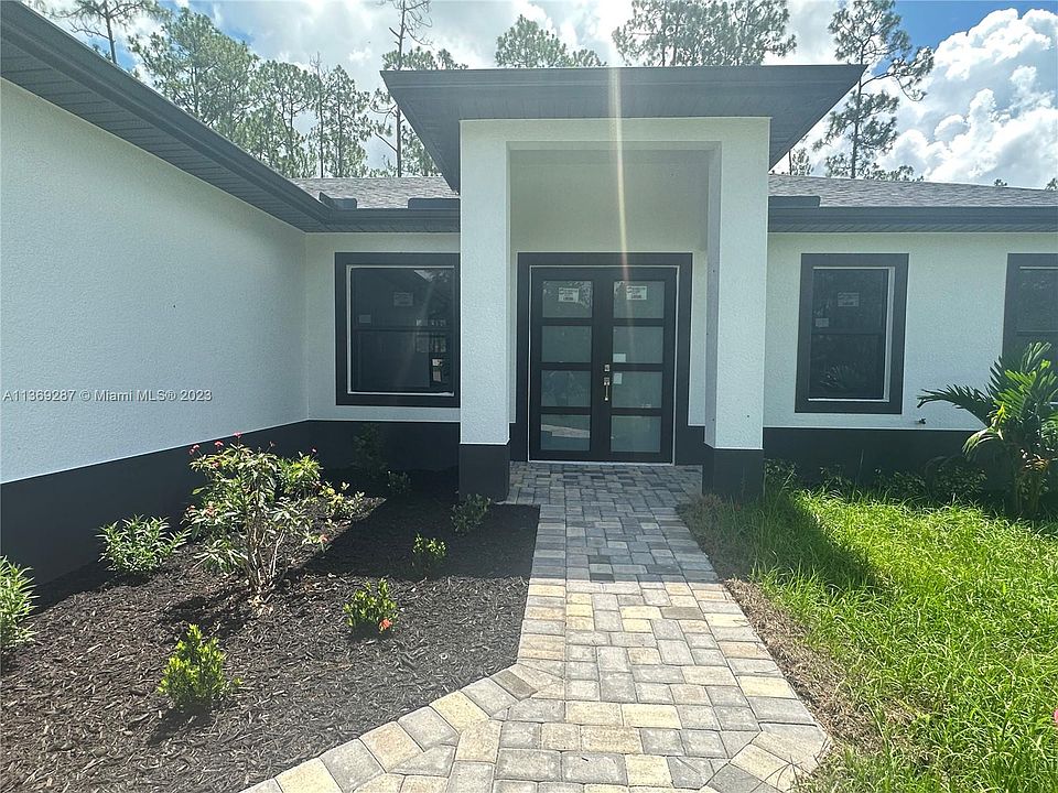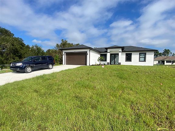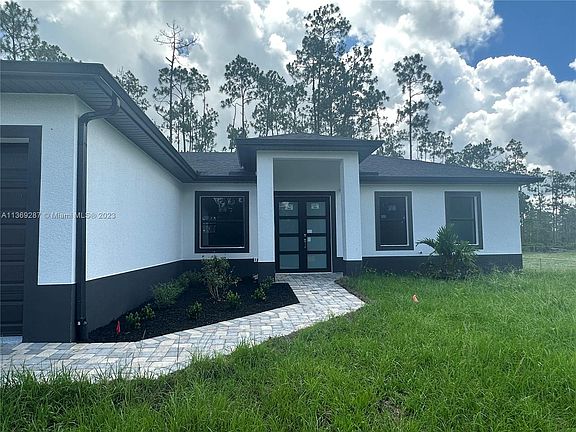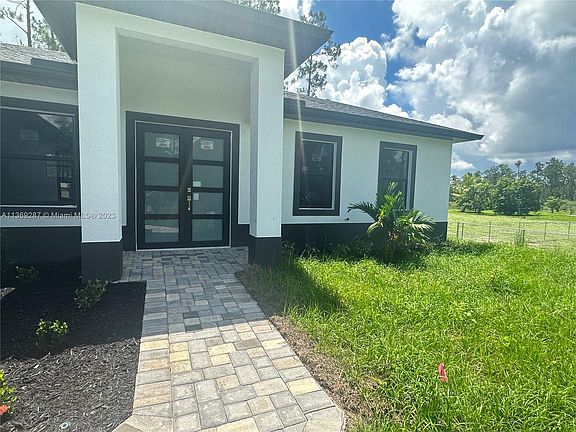YOUR BRAND-NEW CONSTRUCTION HOME AWAITS in Lehigh Acres This is a fantastic opportunity to move into the home of your dreams with 0.5-acre lot to put a magic pool park your truck or boat. These 3 beds, 2 bath plus office with open-concept residence is a showcase of quality craftsmanship with polished tile floors (32X32 tiles) and quartz counters plus the hurricane impact windows and doors. The kitchen is decked out with all stainless-steel appliances, stunning quartz countertops, crisp white cabinetry, and an adjacent dining area. Additional offerings include a 2-car garage, open terrace, and NO HOA FEES. This property is 35 miles east of Ft Myers beaches and 30 minutes from Ft Myers airport.
