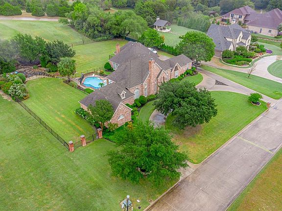 Grand, one story family home located just a short walk to Lake Ray Hubbard! Located in the exclusive community of the Moraine, this 0.94 acre lot has privacy galore, a diving pool with hot tub and enough rooms for the entire family. Enjoy 4 bds, PLUS two living areas, private gym, study and enormous kitchen. Pool views from almost every room & huge grassy play area. Soaring ceilings, floor to ceiling windows, marble floors, crown molding & just minutes to 1-30 for access to entire Dallas metroplex.