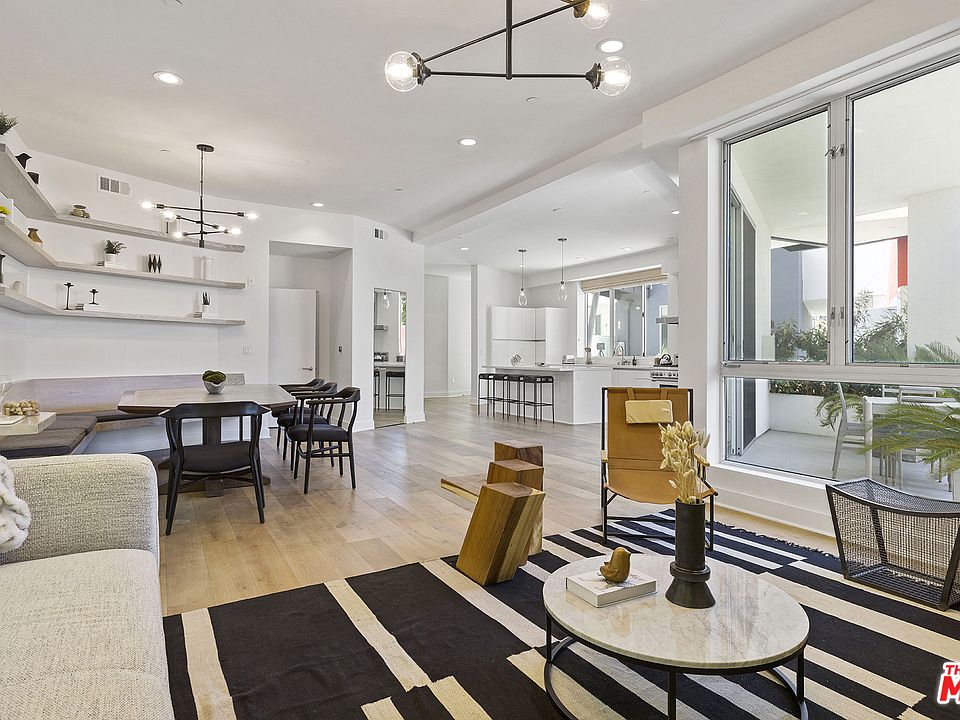 This single level modern residence is perfectly situated in an iconic destination adjacent to Melrose Place's cafes and boutiques, while maintaining privacy and tranquility. The sophisticated interior features wood floors throughout, designer built-ins, custom lighting, and timeless wallpaper. A gourmet kitchen is well equipped with top of the line appliances, ample storage, and center island. Outdoor space is inclusive of a wraparound patio, surrounded by lush landscaping + bamboo, creating a zen atmosphere that can be felt both inside and outside the home. Amenities include: laundry in unit, secure entry + cameras, dedicated Tesla charging, side by side parking, guest parking, and storage. Indulge in the ultimate Los Angeles lifestyle, near boutique shopping, dining, and entertainment.