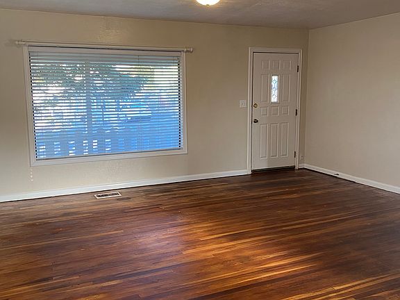 This cozy 2bd 1ba house is located in a quiet neighborhood with a beautiful view of the blue mountains. It's close to town and in walking distance to two City parks. This house features a great open floor plan, beautiful hardwood floors, a spacious kitchen, with newer appliances, laundry room with washer/dryer hook up, central heating and cooling, a fenced backyard, covered patio, and off street parking.