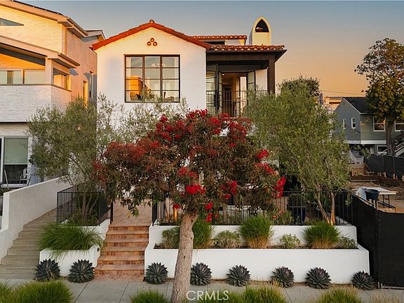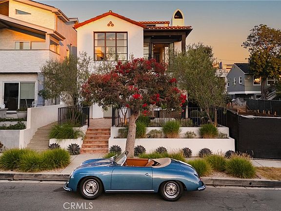 Located in the coveted Flower Streets, this Spanish Modern residence is a true architectural gem—built as a duplex, offered as one seamless property. With over 3,000 sq ft of living space, the home includes a 2,100+ sq ft front residence that lives like a single-family home and a 900+ sq ft rear guest home with 2 beds and 2 baths. Both units feature ocean-view decks, with matching high-end finishes for a seamless transition if combined.