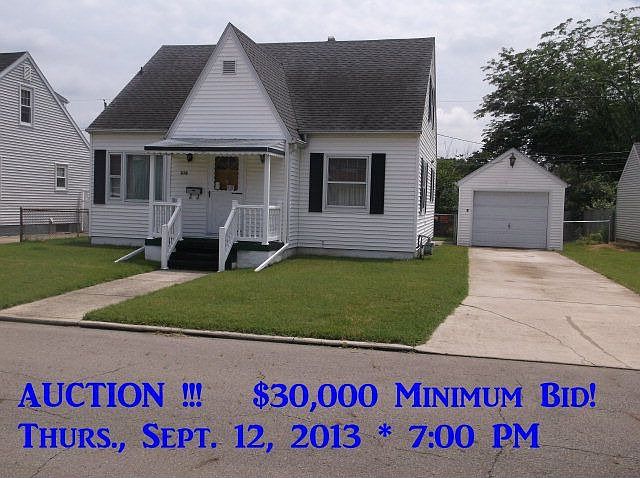 AUCTION !!! $30,000 Minimum Bid! 3 Bedroom, 1.5 Bath Home w/detached Garage being sold Turn Key w/household goods! Thurs., Sept. 12, 2013 at 7:00 PM. Terms: $5,000 down at time of sale in cash or check; balance & possession at closing on/before Oct. 12, 2013; taxes prorated to closing; no buyer contingencies exist; sold as-is; offered free & clear prior to closing.