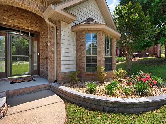 Near military bases and interstate. The open-concept layout features a split-bedroom floor plan. The large sized master is a true retreat, complete with a box-tray ceiling and a private sitting room that opens to the covered, screened-in rear deck. The luxurious en-suite bath boasts dual granite vanities, a garden soaking tub, a separate shower, and an oversized closet. The well-appointed kitchen offers ample storage with 36'' staggered maple cabinetry, granite countertops, and includes all GE black appliances. A formal dining room with box-tray ceiling and a breakfast nook framed by distinctive arches flow seamlessly into the spacious great room. Two secondary bedrooms are located on the opposite side of the home with a shared bathroom, also featuring granite countertops. A dedicated study just off the foyer includes double doors for privacy and a sunny garden window. Tile flooring runs throughout all wet areas. The nicely landscaped yard includes an sprinkler system, a privacy fence, and backs up to a protected wooded area for added seclusion. The screened, covered deck extends the home's living space and can be accessed from both the great room and master suite. Located in a community that features a well-maintained landscaped play area in the center of a quiet roundabout.