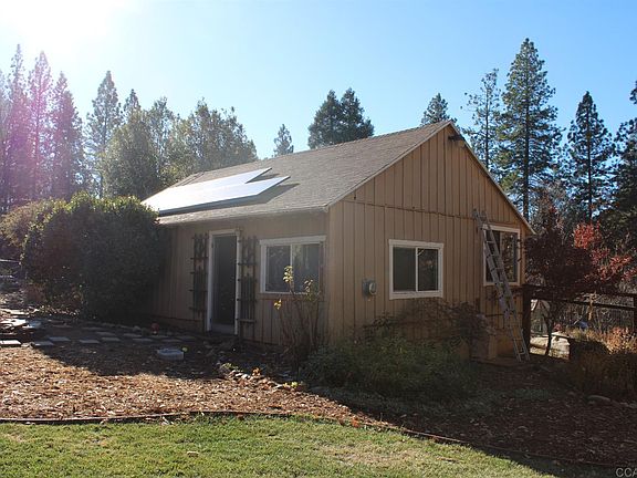 Charming property. Cute cabin style home with natural wood front door,ceilings with built in book cases and cabinets. Large picture windows brighten up the living room. Central heat with a wood burning stove keep the home warm and cozy. Master bedroom with sliding door leading to private outdoor deck. Solar power is leased at only $65 per month. There is a detached Guest quarters with heat. The property has a two car garage and is fully fenced and cross fenced. Enjoy garden area with it's greenhouse and fruit trees.
