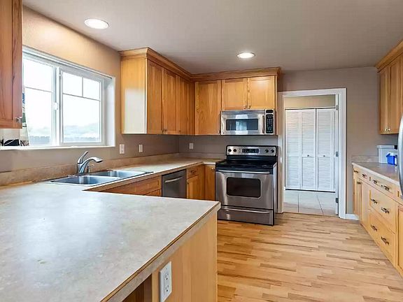 This duplex is an absolute must see! The upstairs 2 bd/2 ba unit features a spacious kitchen with beautiful wood cabinetry and bright airy windows. Enjoy hardwood floors throughout the kitchen, dining and living room area. All appliances included-along with a washer & dryer! Beautiful mountain and territorial views from your deck and windows! Large master bedroom with ensuite bathroom that includes double vanity sinks and plenty of storage! Featuring a low maintenance yard, and tucked back in a quiet neighborhood, you do not want to miss out on this home! Only a 10 Minute drive to Oregon State University! School District: Philomath All utilities will be split between the 2 units in the duplex.