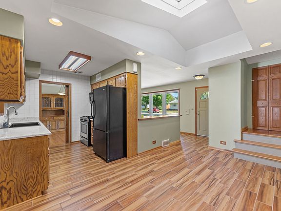 Welcome to this inviting 3 bed, 2 bath family home, ideally located on a quiet, tree-lined street in the heart of Lombard. Perfectly positioned on a premium lot, the home sits directly beside Madison Meadows Park-offering unmatched access to trails, playgrounds, athletic fields, and an 18-hole disc golf course. Step inside to a bright and open floor plan with flexible living space to suit a variety of lifestyles. The spacious eat-in kitchen is the heart of the home, featuring a skylight that fills the room with natural light throughout the day. Just off the kitchen is the main living area that is a perfect spot for relaxing or entertaining, complete with a cozy fireplace and a full bathroom nearby. Upstairs, you'll find three generously sized bedrooms, each with ample closet space, and a full bathroom conveniently located on the bedroom level. The finished basement offers even more room to spread out, with space for recreation, an additional storage room, laundry area, and crawl space. Basement floors and walls were refinished in 2022 with sealed and finished concrete for a fresh and clean look. Enjoy outdoor living in the large backyard, featuring an above-ground pool, ideal for summer fun and entertaining guests! Recent updates include: Roof, siding, and gutters (2019), AC unit (2021), New Quartz Counters and Sink in kitchen (2021), New iron entry gate (2025). Conveniently located near local shopping, dining, and all the amenities Lombard has to offer. Do not miss the opportunity to own this beautifully cared for home in one of Chicago's most sought-after suburbs, perfectly situated near parks, shopping, and more.